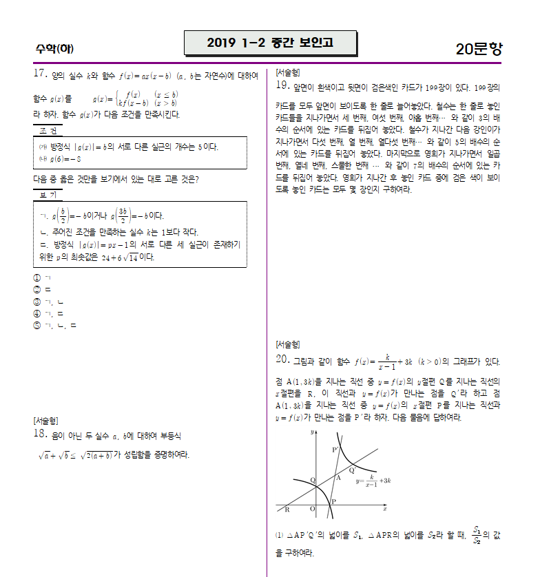 고1 수학 2학기 중간고사 기출문제 | xx외고