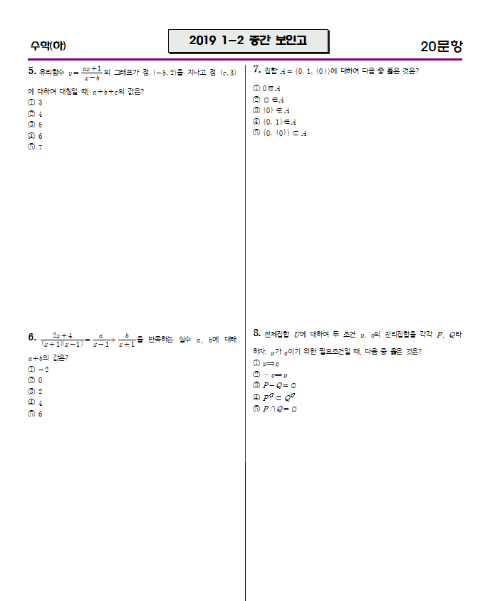 고1 수학 2학기 중간고사 기출문제 | 서울 광x여고 2019년도 고1 수학 광x여고 기출문제 편집본입니다. 필요하신분들 아래 스샷에서 출제범위 확인하시고 사용하시길 바랍니다. 아래 편집화일 올