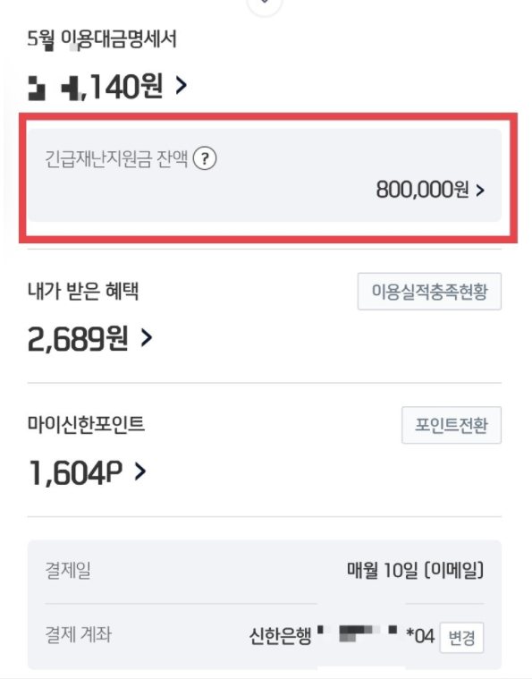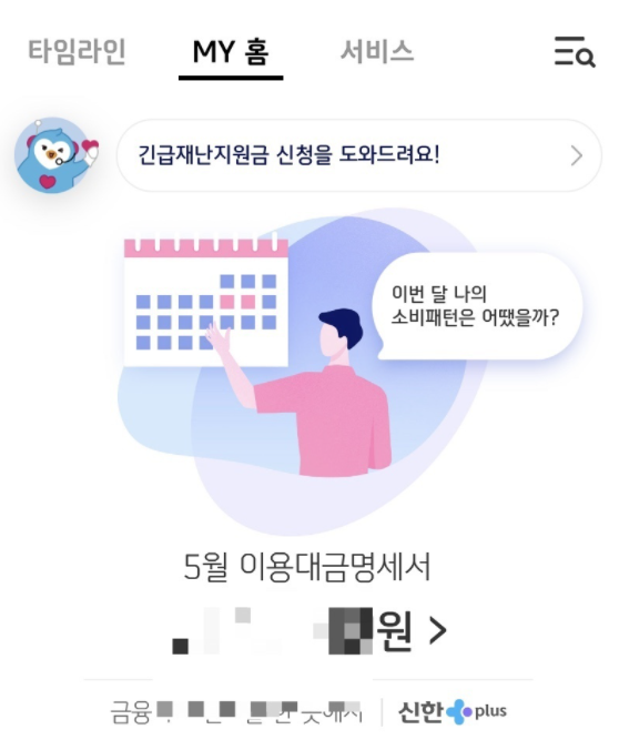 - 모바일로 신한카드 재난지원금을 조회할 경우