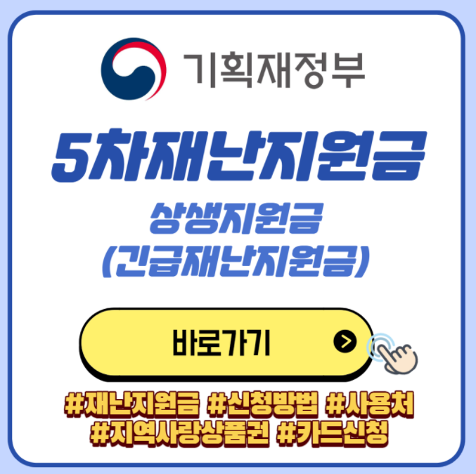 소상공인과 자영업자를 살리기 위한 5차 재난지원금 신청을 받고 있습니다. 1인당 최대 25만으로 적용되는 이번 지원금은 지역경제를 다시 살리자는 취지로 지역상품권 사용이 가능하며 성인이 지급받을 수 있습니다.