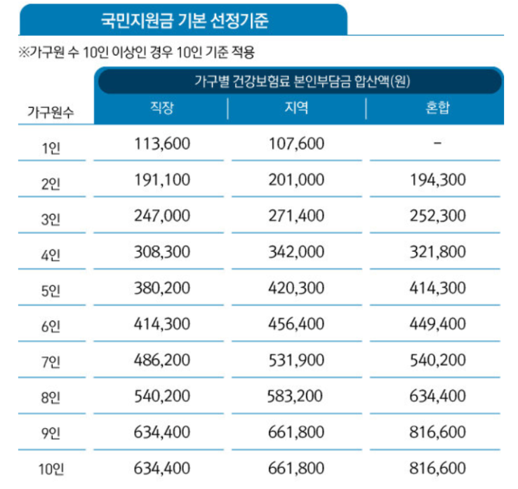 소상공인 등 지역가입자 외벌이 가구는 2인 가구 20만 1000원, 3인 가구 27만 1400원, 4인 가구 34만 2000원 이하가 대상이 됩니다.