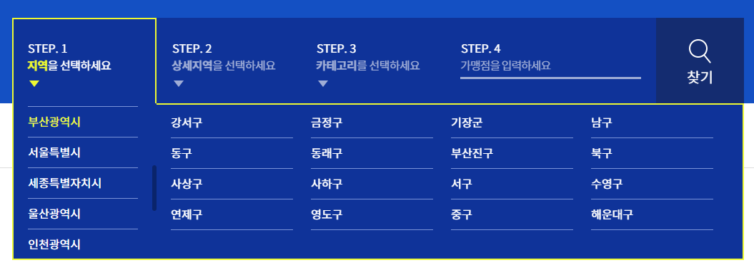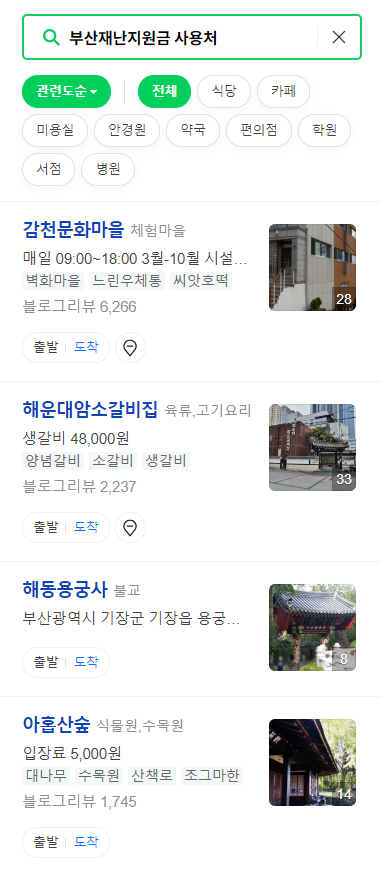 하시면 부산시에 재난지원금을 사용할 수 있는 모든 사용처들을 검색하실 수 있습니다.