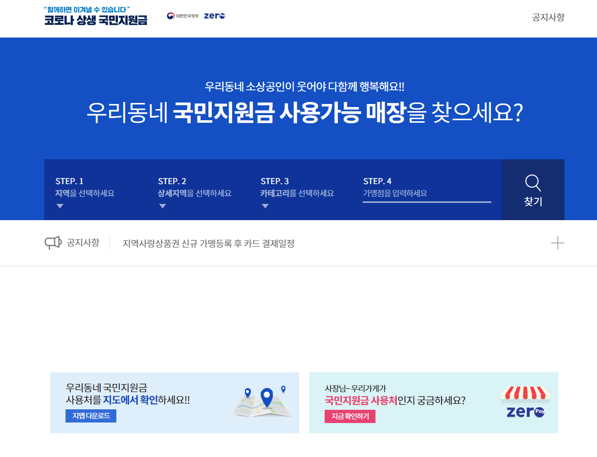 국민지원금 사용처 홈페이지에 들어가면 5차 재난지원금 사용처를 검색해 보실수 있습니다.