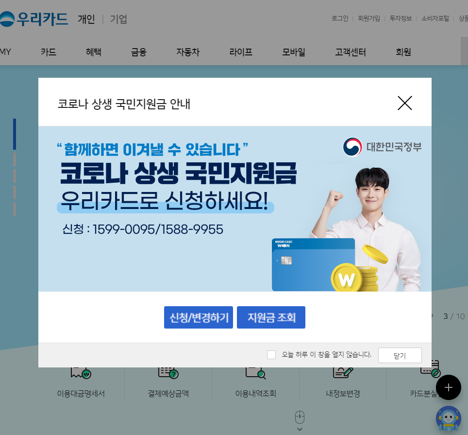 - 핸드폰이나 PC에서 우리카드 홈페이지로 들어가세요