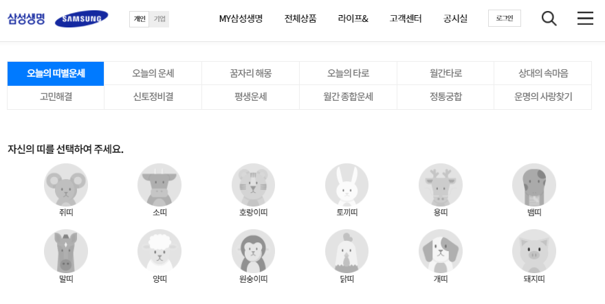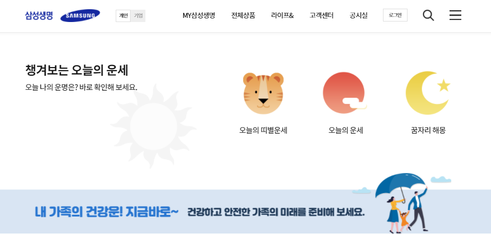 삼성생명 홈페이지에서도 오늘의 운세, 꿈자리 해몽, 오늘의 타로 등 다양한 정보를 무료로 검색하실 수 있습니다.