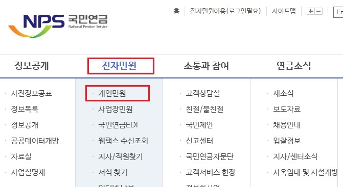 1. 국민연금공단 사이트(www.nps.or.kr)에 접속 합니다.