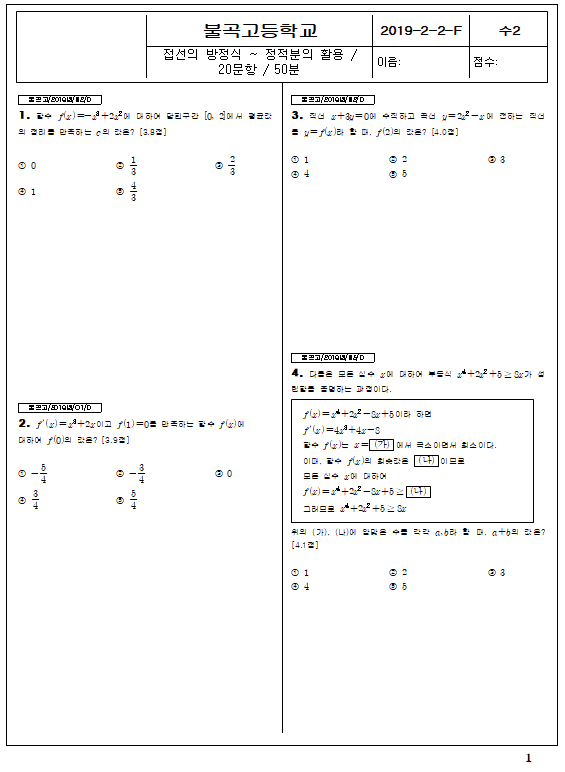 고2 수학 2학기 기말고사 기출문제 | 용인 분당 동탄지역(2)