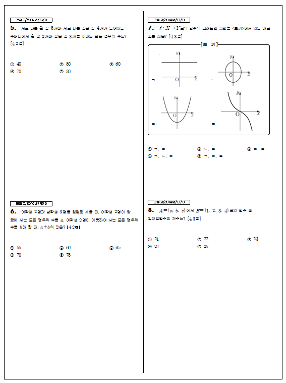 2019년 1학년 2학기 기말 분당고(분당) : 함수 ~ 순열조합