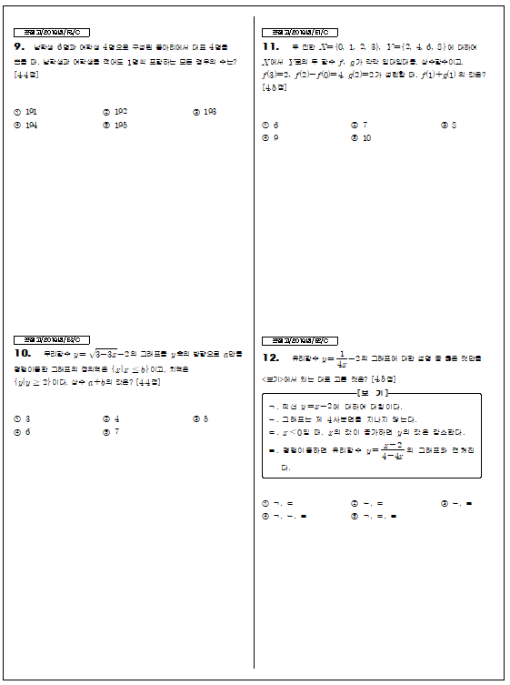 2019년 1학년 2학기 기말 분당중앙고(분당) : 함수 ~ 순열조합